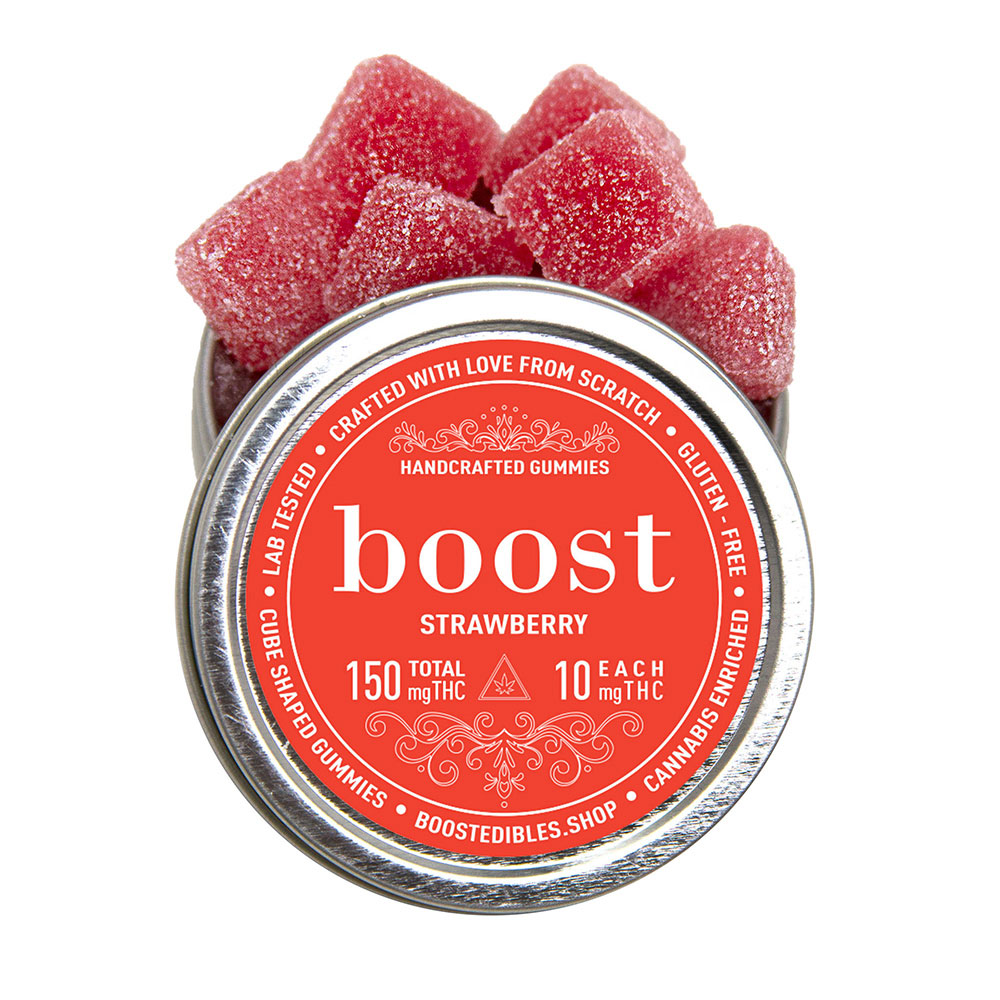 150mg THC Cubes by Boost Edibles are the tastiest, juiciest, naturally flavoured cannabis enriched gummies that’re made with care and with the best ingredients to deliver an excellent, consistent dosage in every bite.